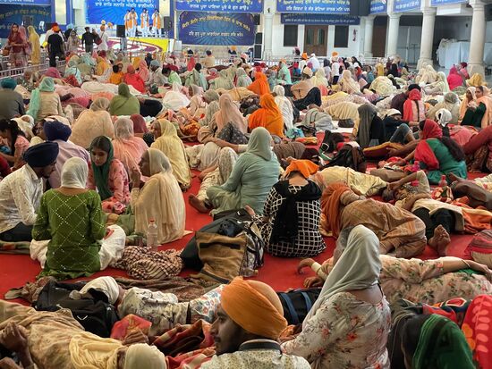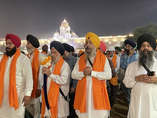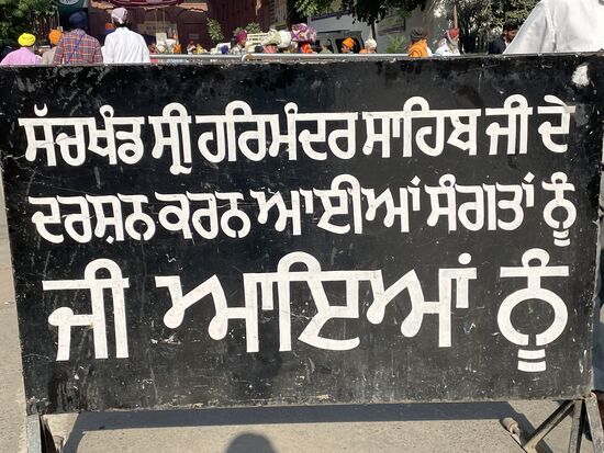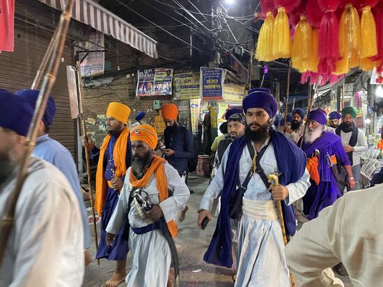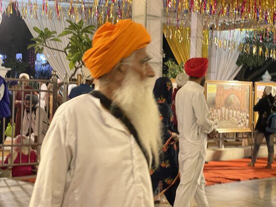 Ich kann es ja nicht wirklich beurteilen, bei all den Kleidern, die man hier sieht, aber heute fällt auf, dass mehr Sikhs mit blau-weissen Kleidern und hohen Turbanen unterwegs sind. Viele haben auch noch einen Säbel umgehängt, oder einen kleinen gekrümten Dolch. Oder sie tragen eine silberne Stange mit sich. Manchmal sind sie in Gruppen unterwegs, manchmal allein.