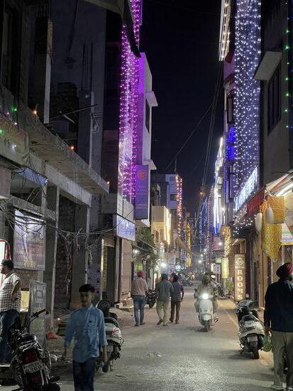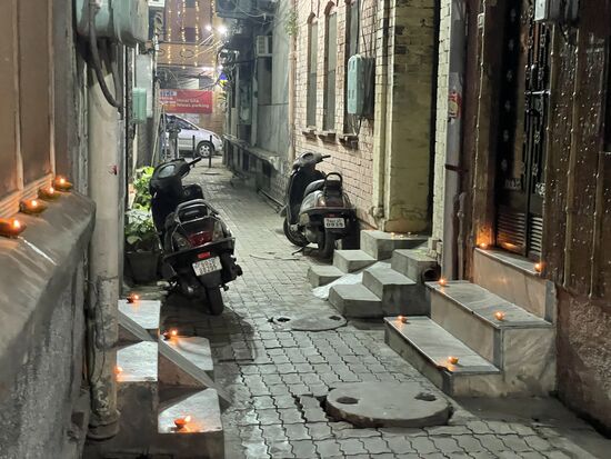 Auf dem Heimweg durch meine inzwischen vertraute schmale Gasse, sehe ich, dass auch hier vor den Häusern Oellämpchen aufgestellt sind.