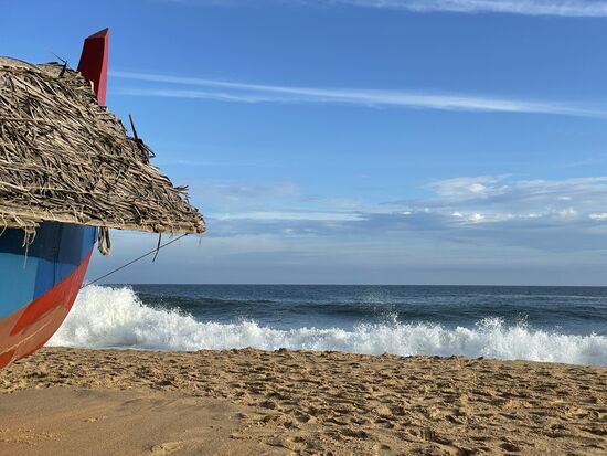 Einen grossen Teil meines Tagesablaufs wird von den täglichen Massagen bestimmt. Inzwischen wurden die Behandlungen mit den Kräuterstempeln, die im Wasserdampf erhitzt wurden, abgelöst mit Kräuterstempeln, mit denen warmes Öl auf dem ganzen Körper verteilt wird. Ausserdem habe ich dreimal den Stirnguss genossen. Dabei wird über dem Kopf ein Topf aufgehängt mit warmem Öl. Dieses wird in kreisenden Bewegungen auf die Stirn gegossen. Das dauert eine halbe Stunde und bringt mich in einen dösenden Halbschlaf. Bei Ayurveda geht es nicht um die Massage oder Lockerung der Muskeln, es geht tiefer, es sollen alle Sinne angesprochen werden. Die Seele soll gesunden und dadurch wird auch der Körper sich besser fühlen. Ich merke, dass ich seit ich hier bin, besser durchatmen kann, Allerdings komme ich hier auch nie zu einer Anstrengung. Das Anstrengendste ist die Rückkehr vom Strand, wo ich manchmal am Morgen den Fischern zusehe.