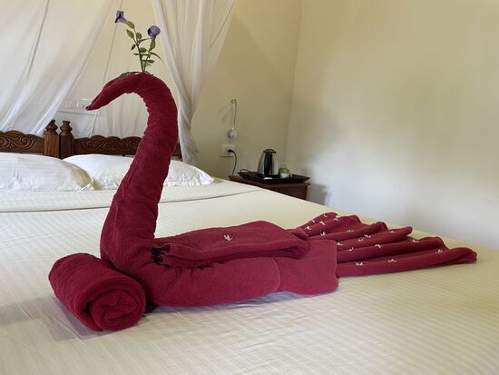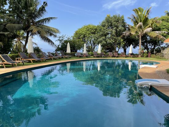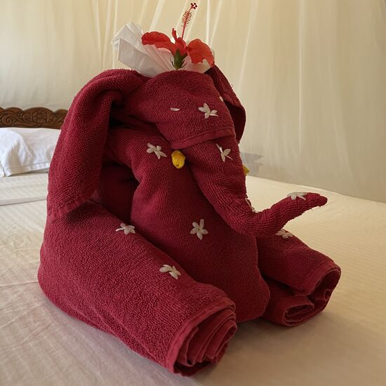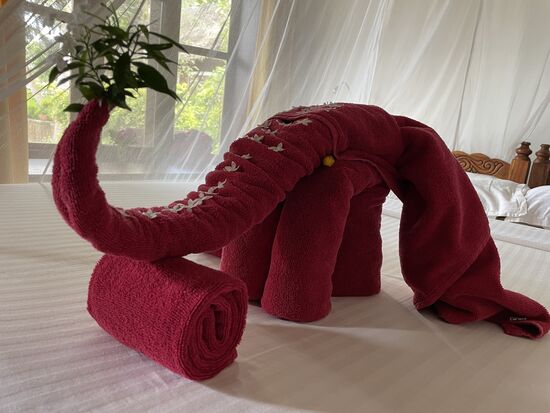 Nachdem mich aber ein Wiener angesprochen hatte, konnte ich nicht mehr verstecken, dass ich deutsch spreche worauf sich mit Rudi und Ernestine aus Wien eine schöne Freundschaft entwickelt hat. Nach und nach lernte ich auch andere Gäste kennen. Und schätzen. Inzwischen sind die Gäste internationaler geworden. Da ist der neugierige indische Geschäftsmann, der am Anfang von Tisch zu Tisch ging und sich bei den Gästen erkundigte, wie es geht, woher man kommt und was man so mache im Leben. Erst später habe ich gemerkt, dass er gar nicht von der Hotel-Administration ist, wie ich das zuerst vermutet hatte, sondern einfach einer der Gäste. Ein sehr sympathischer im Übrigen, der hier mit seiner Schwester eine 10-tägige Ayurveda-Kur macht. Oder die belgische Sängerin, die mit ihren drei Teenager-Girls eine Auszeit nimmt. Sie sei sogar eine bekannte Sängerin, weiss die junge Afrikanerin aus Ghana. Auch mit Anna aus Irland habe ich mich angefreundet und kurz ein paar uralte Erinnerungen an Dublin aufgefrischt, wo ich vor tausenden von Jahren Englisch gelernt habe. Alex, der eigenartige Australier mit der Halbglatze und dem Zopf auf der anderen Kopfseite, der in Norwegen wohnt, ist mit seiner Mutter für ein paar Tage hier. Und dann ist da noch der Heiler aus Österreich, der es schafft, seine Hoso so weit unten zu lassen, dass man von seinem nackten Hinterteil immer wieder unerwünschte Ansichten bekommt. Die Gäste sind also äusserst vielseitig geworden.