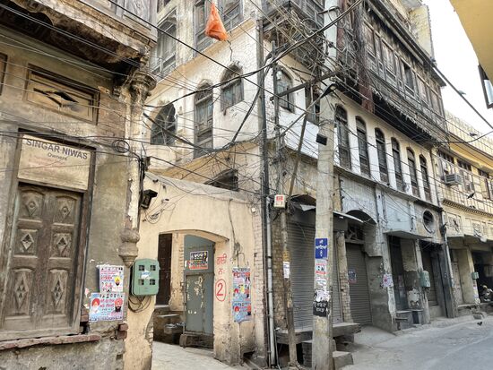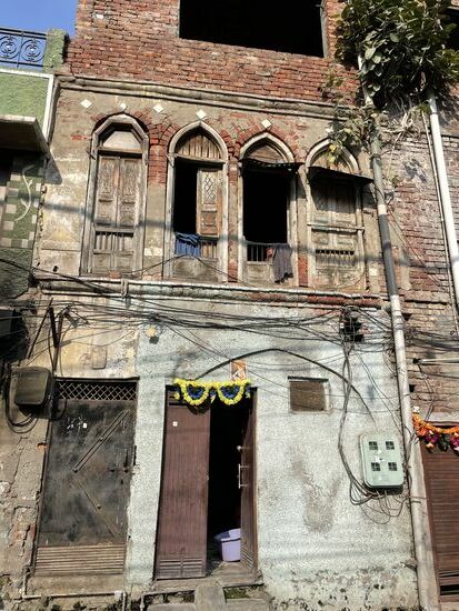 Die Gassen könnten wirklich schön sein, mit ihren prunkvollen Fassaden. Mit den Fensterfronten, die jetzt mit blinden Scheiben bestückt sind. Schade, dass das alles so dem Verfall hingegeben wird. Wie die Menschen wohl dahinter wohnen. Manchmal sieht man irgendwo Wäsche hängen, oder es finden sich noch ein paar LIchterketten oder Girlanden von Diwali. Es müssen wohl tatsächlich Menschen in diesen Häusern leben.