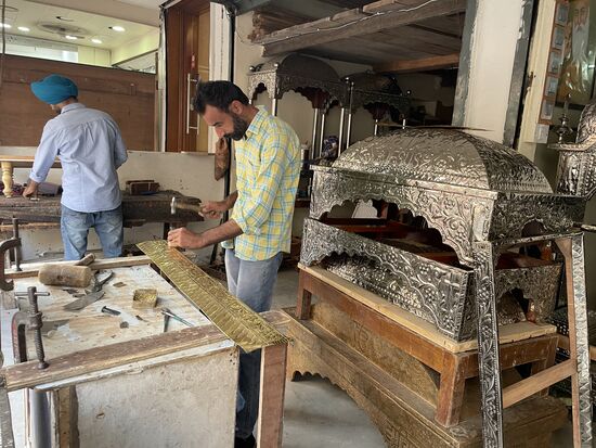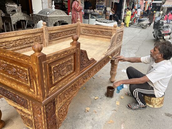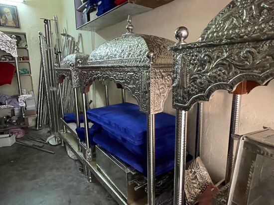 Die Gestelle werden in den Tempeln und für Hausaltäre gebraucht. Sie sind extrem aufwändig gearbeitet und haben oft einen Aufbau aus Holz, der dann mit Blech verkleidet wird.