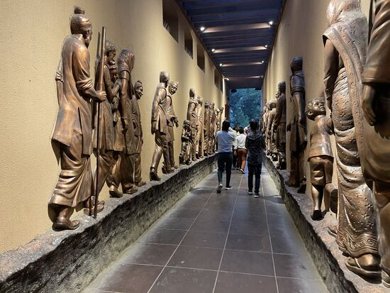 Der Ort ist ganz in der Nähe. Eine schmale Pforte, die in den kleinen Garten führt. Ein schmaler Gang, dessen Wände mit Skulpturen verziert ist. Noch weiss ich nicht, worum es sich handet.