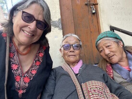 Es ist ein neugieriges Ja und nachdem ich ihnen ihr Foto gezeigt habe, zeigt die eine neben sich. Ich soll mich zu ihnen setzen, ein gemeinsames Selfie. Sie rücken zur Seite, doch so breit ist die Treppenstufe doch nicht, dass wir alle drei darauf Platz hätten. Aber irgendwie bringen wir das Selfie zustande und ich behalte das Bild als Erinnerung an eine kurze fröhliche Begegnung, ganz ohne gemeinsame Worte. Nur mit Lächeln und Gesten.
