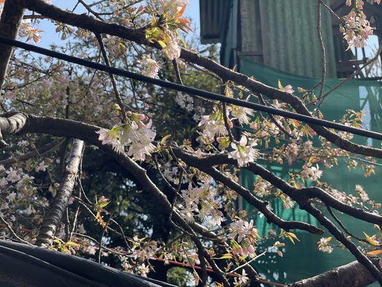 Bald bleibe ich wieder stehen. Der blühende Baum hat meine Aufmerksamkeit auf sich gezogen. Er sieht aus wie ein Apfelbaum. Und obwohl hier bestimmt Äpfel wachsen, kann ich mir doch nicht vorstellen, dass die jetzt im Herbst blühen könnten. Denn auch hier ist Herbst.