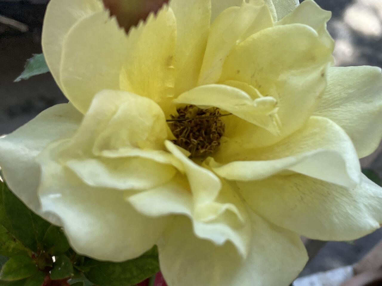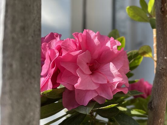 Daneben stehen auf einem kleinen Balkon, zu dem eine schmale Treppe führt, ein paar Blumentöpfe. Ob ich näher kommen darf, frage ich den Mann, der soeben aus der Türe guckt. Auch er antwortet mit einem Wackeln des Kopfes, macht eine entsprechende Bewegung mit den Händen und verschwindet wieder hinter dem Vorhang. Ich steige die paar Stufen hinauf und fotografiere die letzten Blumen des Sommers. Eine fast verwelkte Rose und ein paar Azeleen. Ganz sicher bin ich allerdings nicht ob es tatsächlich Azeleen sind. Später, beim Betrachten der Bilder merke ich, dass sich auch noch eine künstliche Gerbera hinein geschlichen hat. Beim fotografieren ist es mir nicht aufgefallen, sie blühte ganz normal in einem Topf.