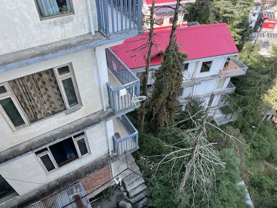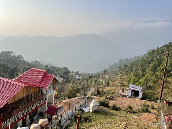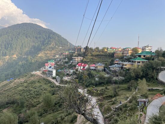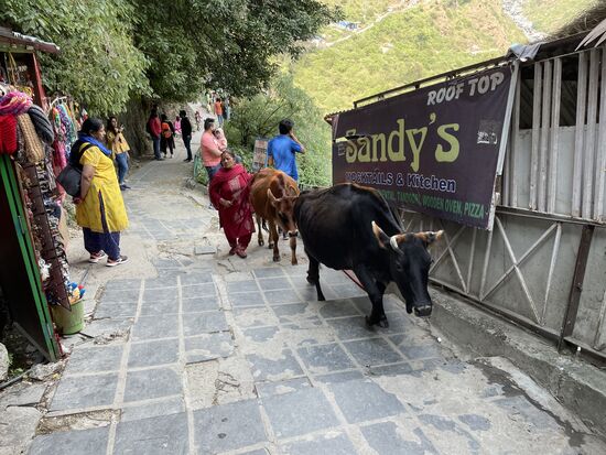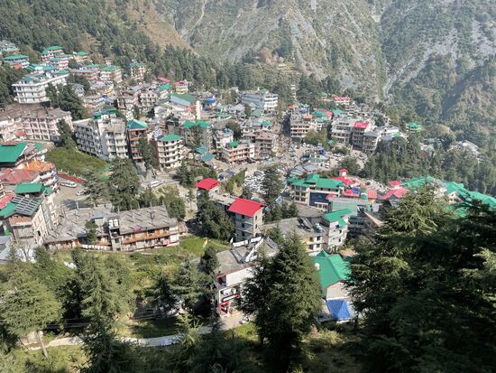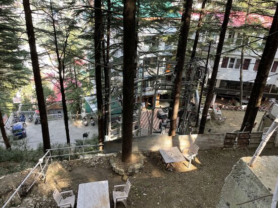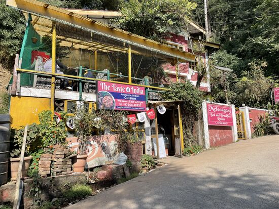 Beim nächsten Hotel kehre ich ein. Es heisst Gandhis Paradise und hat eine grosse Terrasse mit Aussicht auf einen weiteren Teil des Ortes. Wie man da wohl hinunterkommt, ich habe keinen Weg gefunden, obwohl ich auf den letzten Metern immer überlegt hatte, ob ich nicht besser wieder hinunter gehen sollte, denn weiter oben scheint nichts mehr zu sein.
