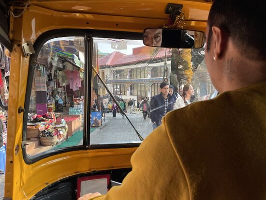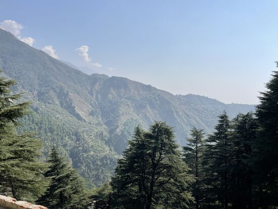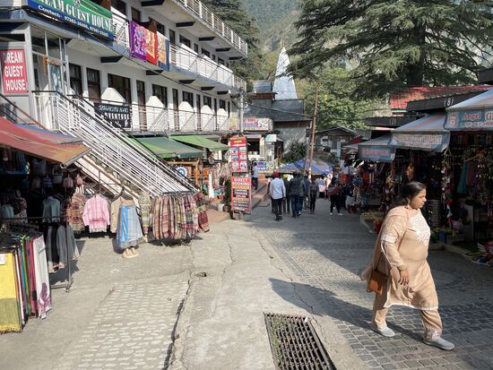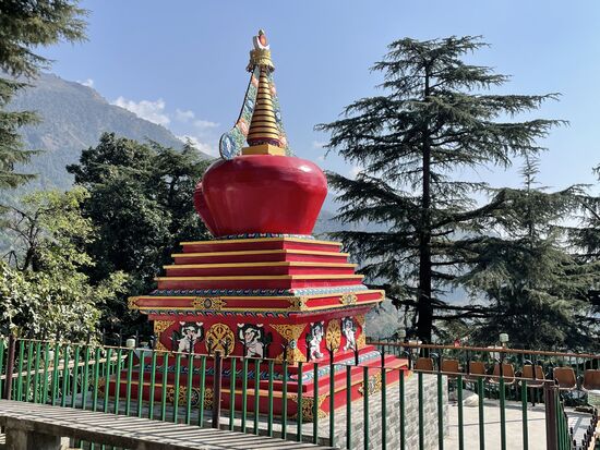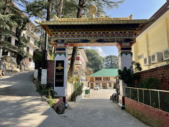 Rajesh hat auf mich gewartet und bringt mich in den Ort zurück. Wir verhandeln eine Sightseeing-Tour auf der er mir alles zeigen will, was McLeodgunj zu bieten hat. Zuallererst fährt er zum Tempel des Dalai-Lama, der komplett in der anderen Richtung des Dorfes ist. McLeodgunj ist der obere Ortsteil in dem mein Hotel liegt.