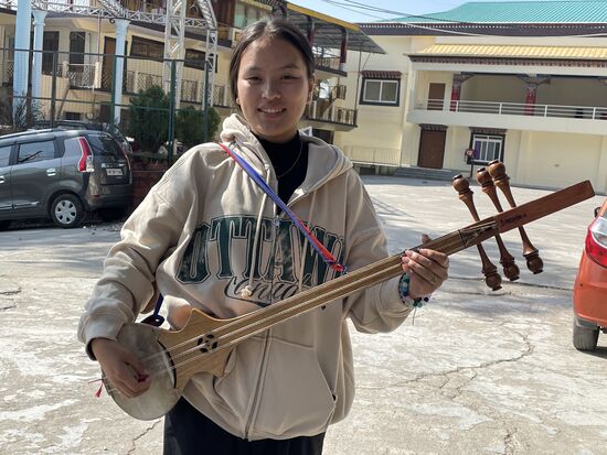 Bei einem grossen Tor steht bei mir auf der Karte Folksmuseum, doch als ich hinein gehe, kann ich davon nichts erkennen. Ich treffe auf ein paar junge Leute, die mit einem Saiteninstrument ein paar Takte üben und dabei ein paar Schritte machen. Es scheint eine Musikschule zu sein. Ein Institut sei es, erklärt mir eines der Mädchen und das Instrument, das sie spielt ist eine tibetische Laute, eine Dranyen.