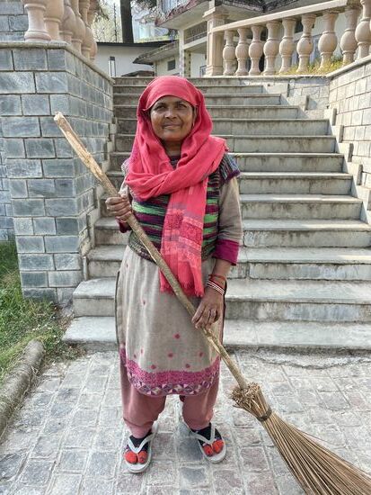 Auf dem Rückweg begegne ich beim kleinen Tempel einer Frau, die mit ihrem grossen Naturbesen die Platten rund um das Wasserbecken wischt. Ich frage sie, ob sie mir ihren Besen kurz ausleihen würde. In zwei Tagen ist Haloween, da könnte ich eine Besenfoto auf dem Status brauchen.