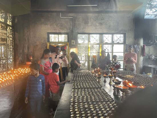 Ein kleiner Raum daneben ist voller Oellampen. Die Leute gehen hinein, zünden ein neues Licht an, verweilen einen Moment und kommen wieder heraus.