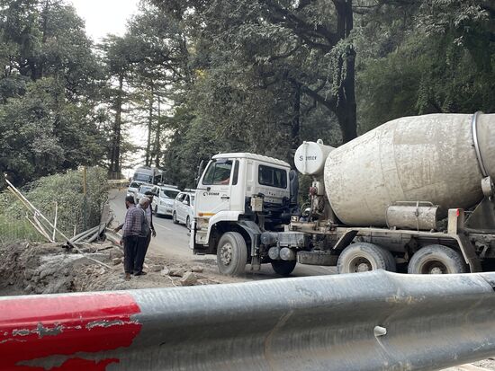 Nach einer Viertelstunde ist der Mischer fertig, muss auf der schmalen Strasse nur noch wenden. Wir aber können bereits losfahren und sind damit die ersten hinter dem Lastwagen. So geht das hier, jeder drängt, jeder kämpft um den Vortritt, hier in den Bergen genauso wie in der Stadt. Die anderen werden ihren Weg auch gefunden haben.