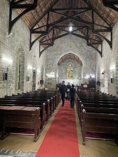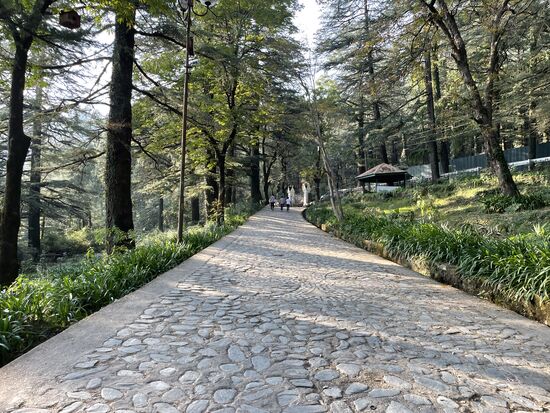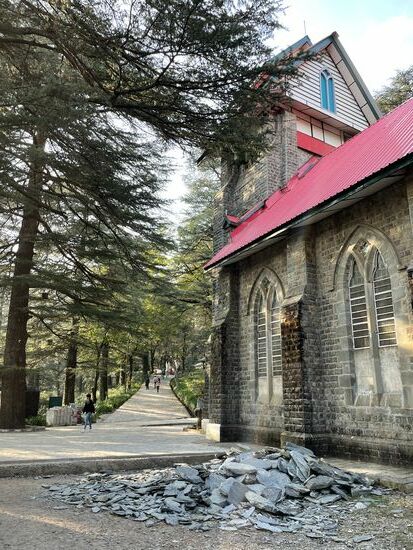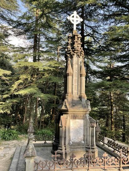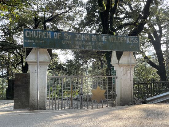 Später erfahre ich im Internet, dass der Turm der Kirche bei einem Erdbeben schwer beschädigt wurde. Das Dach wurde wohl als vorübergehender Schutz gebaut. Bekannt ist die Kirche für ihr Glasfenster hinter dem Altar und das Denkmal zu Ehren des Vicekönigs Lord Elgin, der hier in Dharamsala 1863 starb.