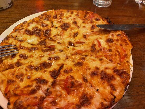 Dann fährt er mich zurück in den Ort, wo ich am Hauptplatz in einem sehr schönen Lokal einkehre. Eine Pizza bestelle und danach gemütlich durch die erleuchteten Gassen zurück zum Hotel schlendere.