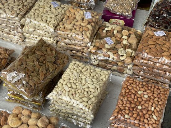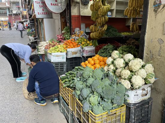 Ich bummle also am Vormittag durch den Ort, gucke mir die verschiedenen Marktstände an. Frisches Gemüse und Früchte wird wie überall offen verkauft. Nüsse kommen abgepackt oft aus Kashmir und das Getreide, Linsen und Bohnen werden ebenfalls offen verkauft. Ich kaufe gelegentlich ein paar Bananen und Nüsse. Das eignet sich immer als kleine Zwischenverpflegung, da ich ja in der Regel nur Frühstück und Nachtesen zu mir nehme.