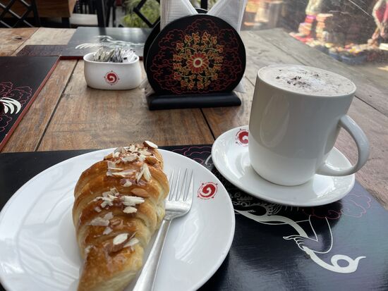 Da ist es ganz praktisch, dass mein Lieblingscafe gleich in der Nähe ist. Es gibt auch heute eine heisse Schokolade und einen Mandelgipfel. So lässt sich das Warten gut überbrücken.