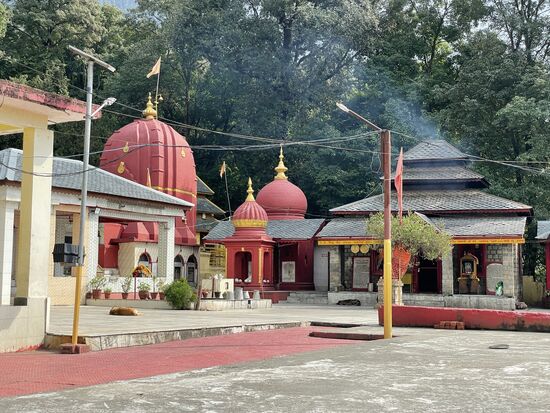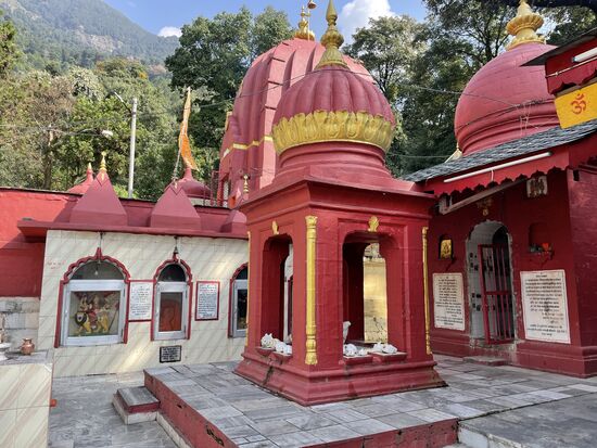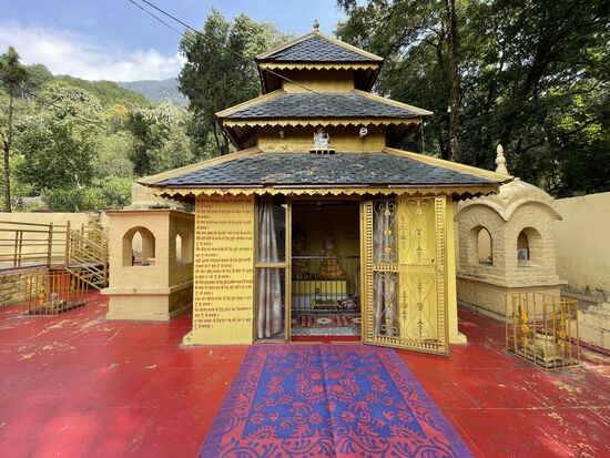 Rajesh hat mir versprochen, alle wichtigen Orte von Dharamsala zu zeigen. Als erstes fahren wir etwas ausserhalb des Ortes zu einem kleinen Shiva-Tempel. Es ist der Aghanjar Mahadev-Tempel. Ein alter Mann weist mich an, die Schuhe zu deponieren, bevor ich das Gelände betrete. Eigentlich ist es eine Ansammlung von kleinen Gebäuden, kleine offenen Räumen, die alle eine Statue enthalten, oder sonst ein göttliches Symbol. Es sind nur wenige Menschen hier, ich spaziere also völlig unbehelligt zwischen den verschiedenen Häuschen, die fast alle rot bemalt sind.