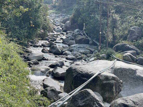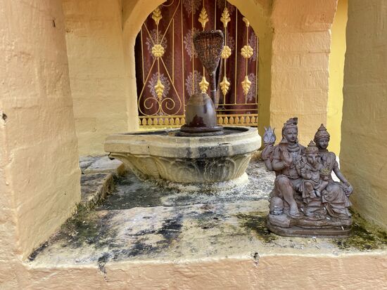 Hier finde ich das Symbol tatsächlich in fast allen der kleinen Tempel und Gebetsstätten. Sogar unten am Bach, wohin man auch noch gehen soll, um den Wasserfall zu besichtigen, steht ein Lingam. Die wenigen Menschen, die den Tempel besuchen, küssen den Stein, auf dem er steht. Grüssen ehrfürchtig, bleiben einen Moment stehen, legen einen Blumenkranz hin oder streuen ein paar Blumen ins Wasser.