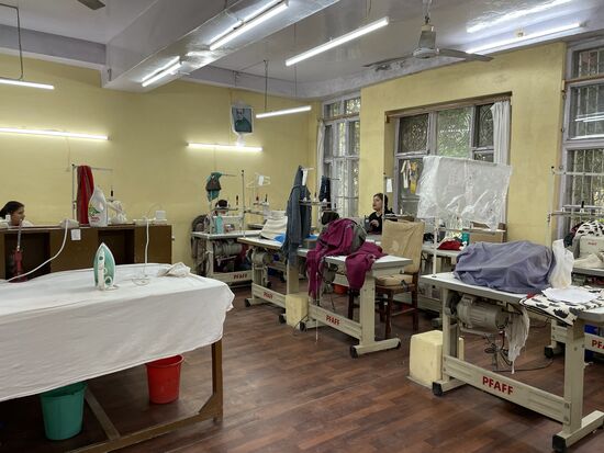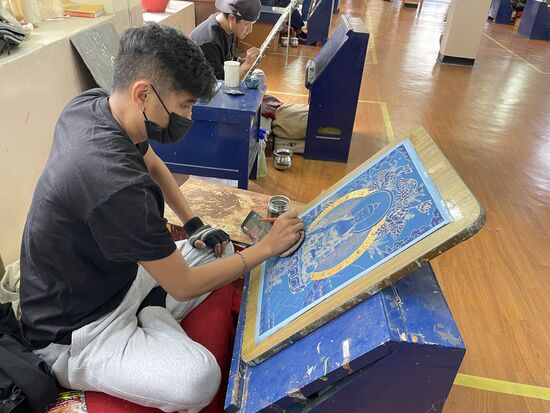 Es ist ein Institut, das sich um die tibetische Kunst kümmert. Es werden junge Menschen in angelehrt. Das Institut wurde 1988 vom Dalai-Lama persönlich gegründet. In kleinen Werkstätten arbeiten junge und alte Leute. Da gibt es eine Weberei, in der aber im Moment niemand an der Arbeit ist, eine Schneiderei, wo ein paar Frauen an den Maschinen sitzen.
