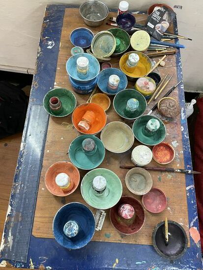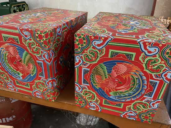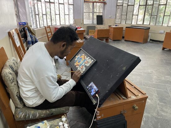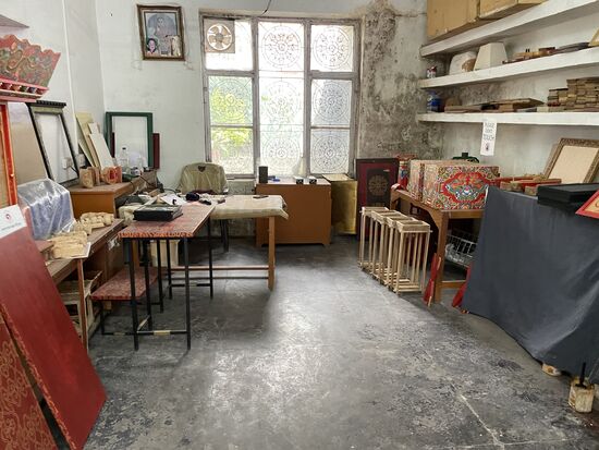 In der Schreinerei entstehen Möbel und kleine hübsche Gegenstände, wie Schmuck-kästchen, Bilderrahmen und Bilder. Alles mit bunten Farben gemalt und mit filigranen Schnitzereien. Die Motive sind komplizierte grafische Ornamente und Fabelwesen Vorherrschende Farbe ist rot.