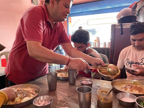 Nach dem Besuch des Puppenmuseums gehe ich zurück zu Rajesh, der findet, dass es Zeit für Lunch sei. Er hatte mir versprochen, mit mir an einem typischen Ort zu essen und ich bin schon gespannt, was für eine Restaurant er ausgewählt hat.
