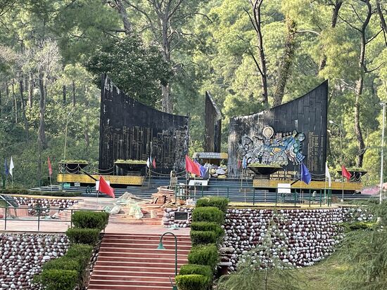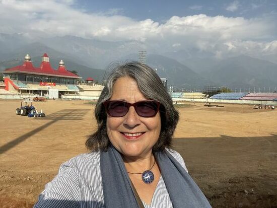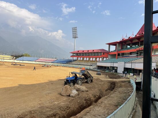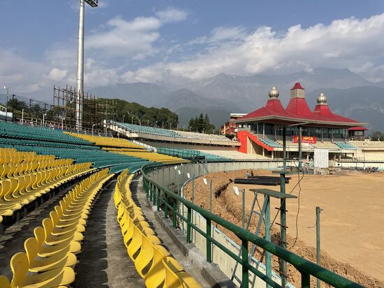 Darum besuchen wir jetzt das Cricket-Stadion. Cricket ist der National-Sport Indiens und er werden regelmässig Spiele im Fernsehen übertragen. Jedenfalls läuft manchmal beim Früchstück in den Hotels Cricket über den Bildschirm. Hier in Dharamsala steht das höchst gelegene Cricket-Stadion der Welt, es liegt auf knapp 1500 m.