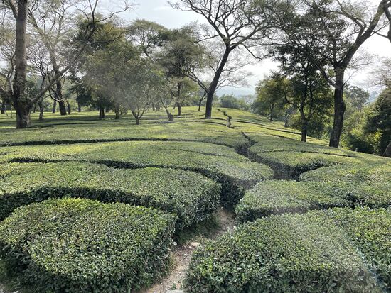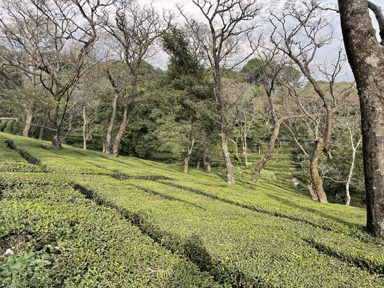 Dieser hat jetzt noch eine echte Überraschung für mich. Einen Teegarten. Schon ewig, seit ich in Rwanda vor über 30 Jahren zum ersten mal eine Teeplantage gesehen habe, möchte ich wieder einmal eine sehen.