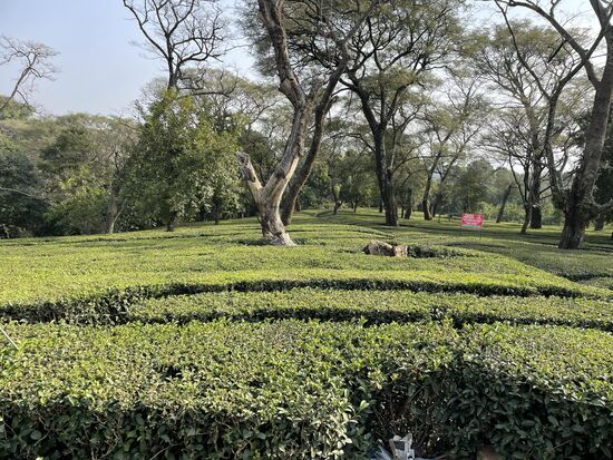 Und jetzt, nachdem wir etwas durch das Gelände gefahren sind, stehen wir plötzlich, nach einer Kurve mitten im Teegarten.