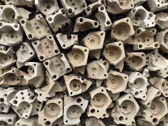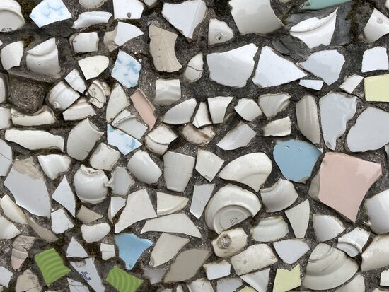 Bei vielen Mauern kann man das Geschirr noch erkennen, aus dem sie gemacht wurden. Teller und Tassen, grosse und kleine Porzellanscherben wurden verbaut. Nek suchte seine Abfälle in der ganzen Stadt zusammen, hatte überall seine Depots und muss tausende von Tellern zerschlagen haben, damit sie in seine Konstruktionen passten.