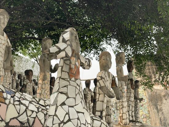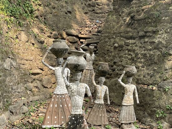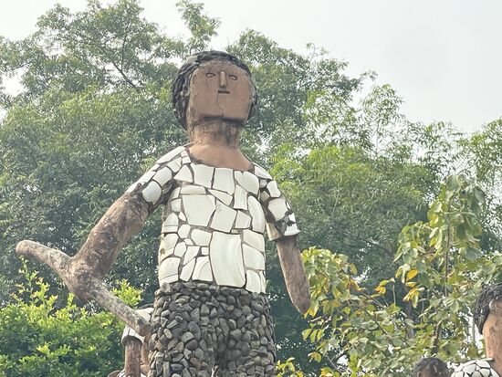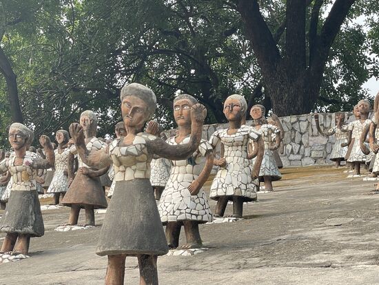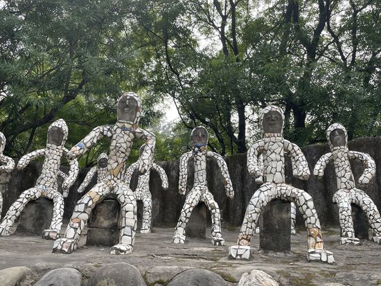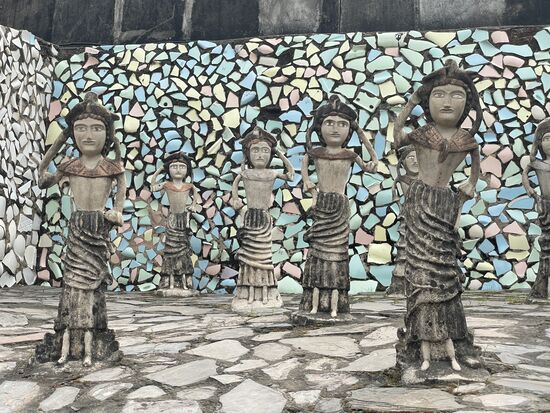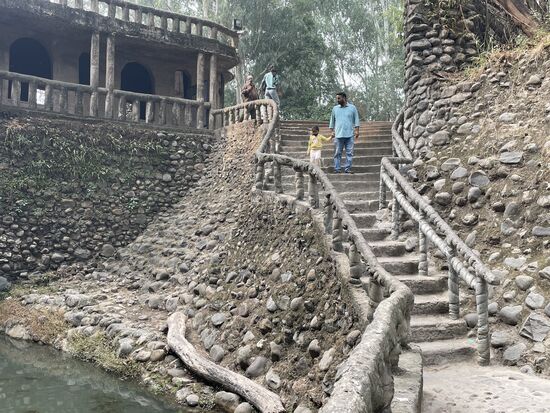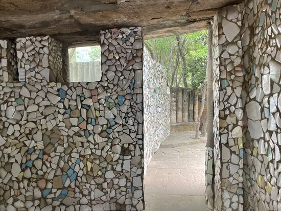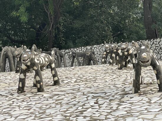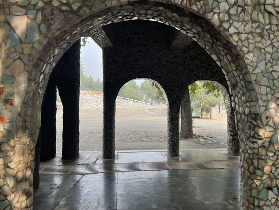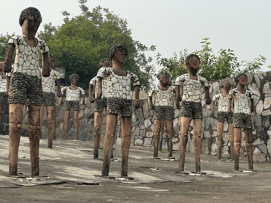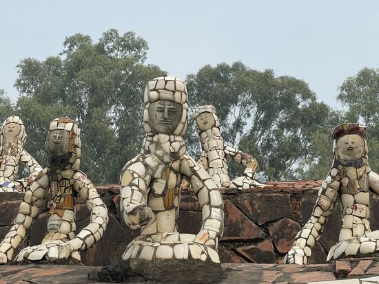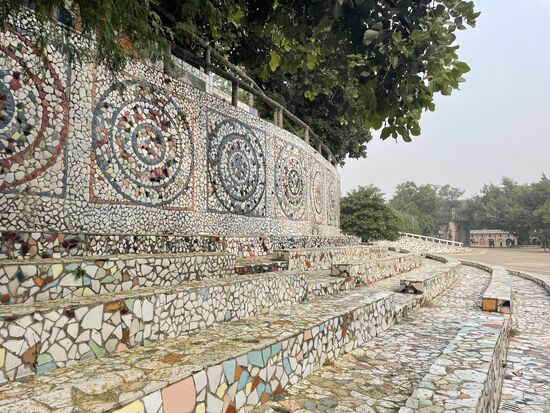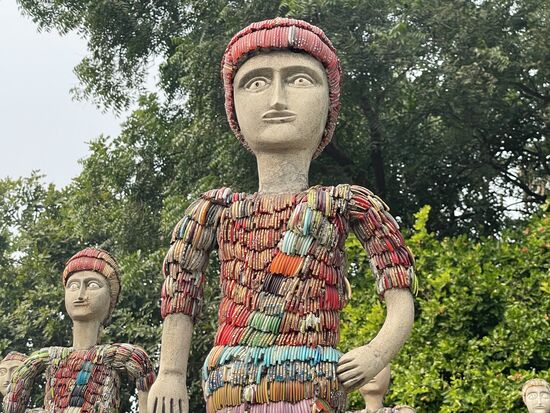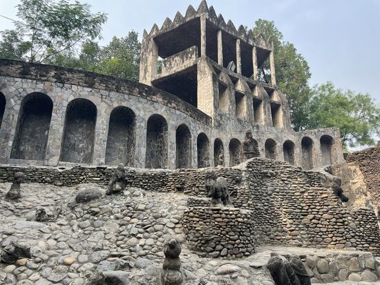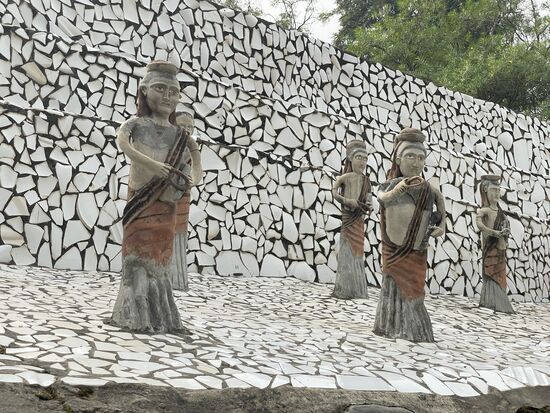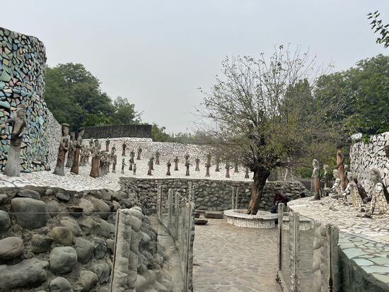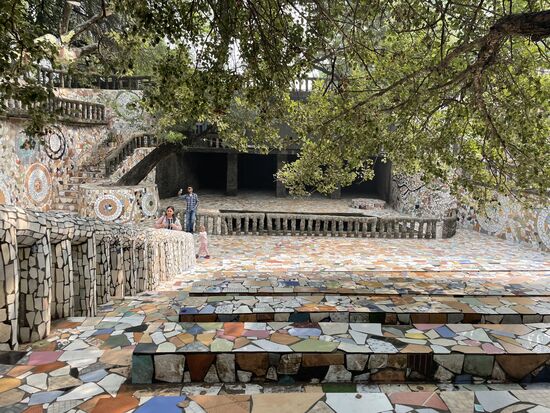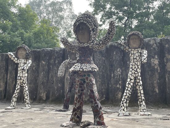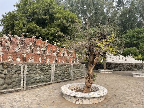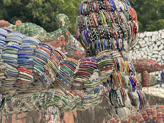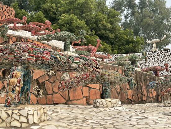 Ohne dass es jemand merkte, hat Nek Chand Saini auf einem Terrain, das niemand interessierte und das wohl etwas versteckt in einer Schlucht lag, diesen Skulpturengarten geschaffen. Verwendet hat er dafür ausschliesslich Industrie- und Haushaltabfall. Schon in der erste Wand hat er viele zerschlagene Steckdosen und Schalter verbaut, später gibt es viel Keramiken. Geschirr und Töpfe. Es ist nicht auf den ersten Blick ersichtlich, aber es ist absolut faszinierend. Nachdem sein Werk entdeckt wurde, wollte man die Arbeit zerstören und ihn ensprechend bestrafen, denn sein Wirken war illegal. Er schaffte es aber, die Bevölkerung für sich einzunehmen und so wurde der Garten 1988 offiziell eingeweiht.