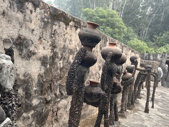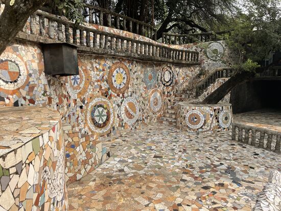 Ich liebe solche Fantasieparks, in denen einfach jede aufkommende Idee verwirklicht wird. Der Garten erinnert mich stark an den Guel-Park von Gaudi in Barcelona, vor allem mit seinem Bereich mit den Porzellanscherben. Aber auch der Palais-Ideal von Facteur Cheval in Hauterives, Frankreich und natürlich der Tarot-Garten von Nicki de Saint Phalle in der Toscana kommen mir in den Sinn.