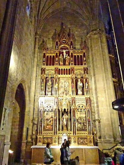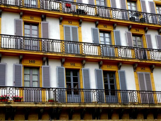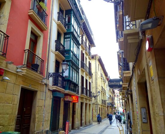 Heute ist Altstadt angesagt.....ein Bummel durch viele enge Gassen, viele noch geschlossene Bars, aber recht wenig Leute im Gegensatz zu gestern. Dafür alle warm angezogen. An 2 Kirchen vorbei, in einer war ich, die andere kostete tatsächlich wieder Eintritt. Mit Hilfe des Plans bin ich auch am Plaza de la Constitución gelandet. Ein grosser rechteckiger Platz, der einst als Stierkampfarena diente. Die Nummern über den Wohnungen erinnern noch an diese Zeit. Die Bewohner vermieteten die Balkone an Zuschauer.