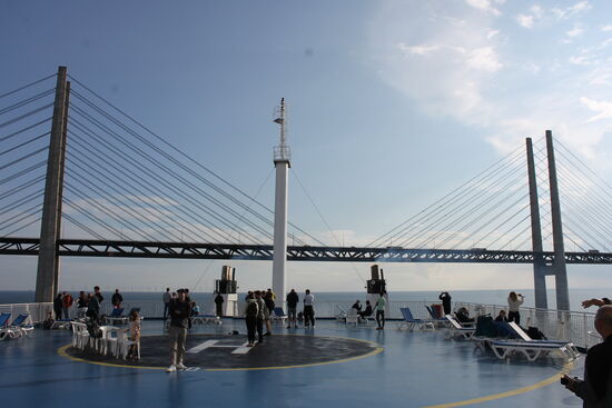 Das Schiff musste unter der Öresund-Brücke hindurch, bevor es in den Hafen einlaufen konnte. Diese Brücke ist schon ein großartiges Bauwerk.