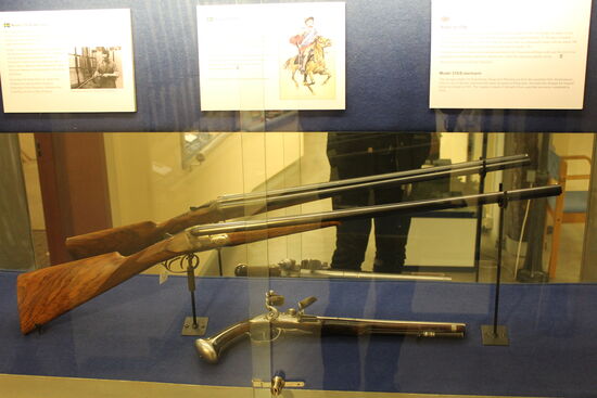 Am Anfang der Werksgeschichte stand die Flinte/Büchse oder wie man ein Gewähr nennt, dass man mit Schwarzpulver und einer Lunte zünden muss. Wie eine Kanone und eigentlich sieht das Ding auch nicht viel anders aus, nur handlicher halt. Damit war es aber in ihrer Zeit eine überlegene Kriegswaffe (jetzt habe ich den Namen von dem Ding) für die Musketiere. (Muskete natürlich). Man denke nur an die vier Musketiere aus Hollywood, obwohl die mehr gefochten als geschossen haben. Was soll’s.