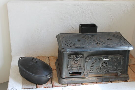 Nähmaschinen zum Beispiel und ganze Kücheneinrichtungen mit Öfen und Kochherden für Holz, Kohle und Gas Beheizung. Kochtöpfe, die man auch heute noch so kaufen kann und Mikrowellen, div. Waschmaschinen und Trockner.