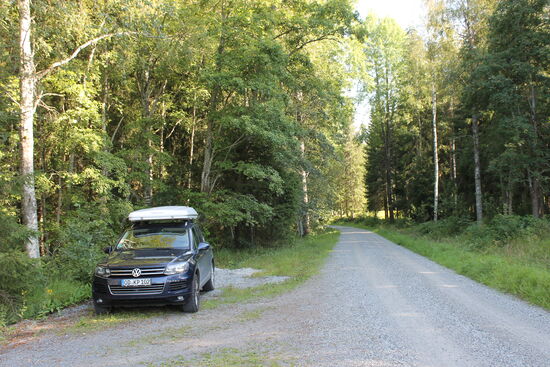 Da hier ganz in der Nähe eine Eisenbahnstrecke vorbeiführt, habe ich auch ein schwaches Handynetz-Signal. Werde erst einmal Mutti anrufen und dann Ina eine gute Nacht wünschen. Habe dann noch einen Spaziergang gemacht und die frische Waldluft genossen und nach einer guten Pfeife (oder auch zwei) werde ich mich in mein Dachzelt zurückziehen. Die Sonne geht unter und ich mache die Augen zu.