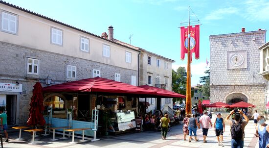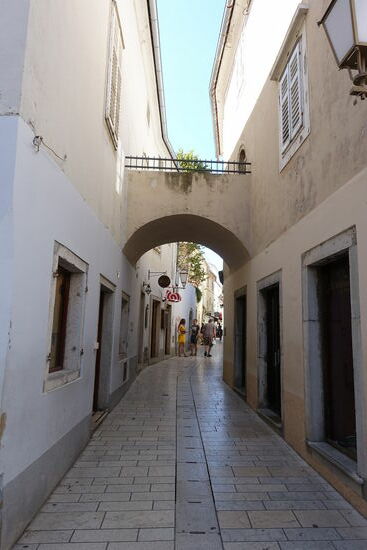 Kathedrale Krk, eine 3-schiffige Basilika aus dem 5. Jh. mit Umbauten Jahrhunderte später. Der weithin sichtbare Zwiebelturm ist das Wahrzeichen der Stadt.