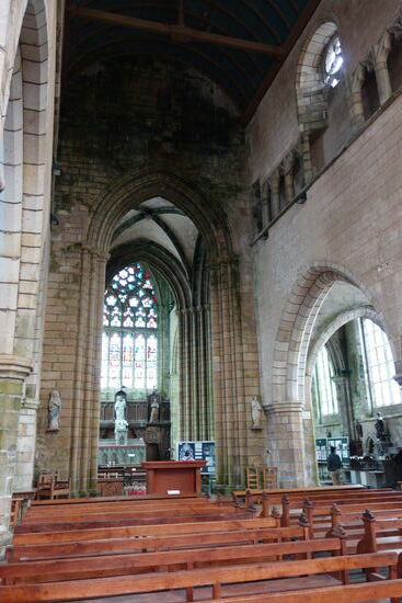 Die auf den Überresten einer romanischen Kathedrale aus dem 12. Jahrhundert erbaute gotische Kathedrale Saint-Paul-Aurélien, eine kleine Basilika, die als Verkündigung bekannt ist, hat ein bemerkenswertes Kirchenschiff aus dem 13. Jahrhundert aus Kalkstein aus Caen, ein in der Bretagne fast einzigartiges Ensemble, und ein 15. Jahrhundert Jahrhundert Granita Chor.