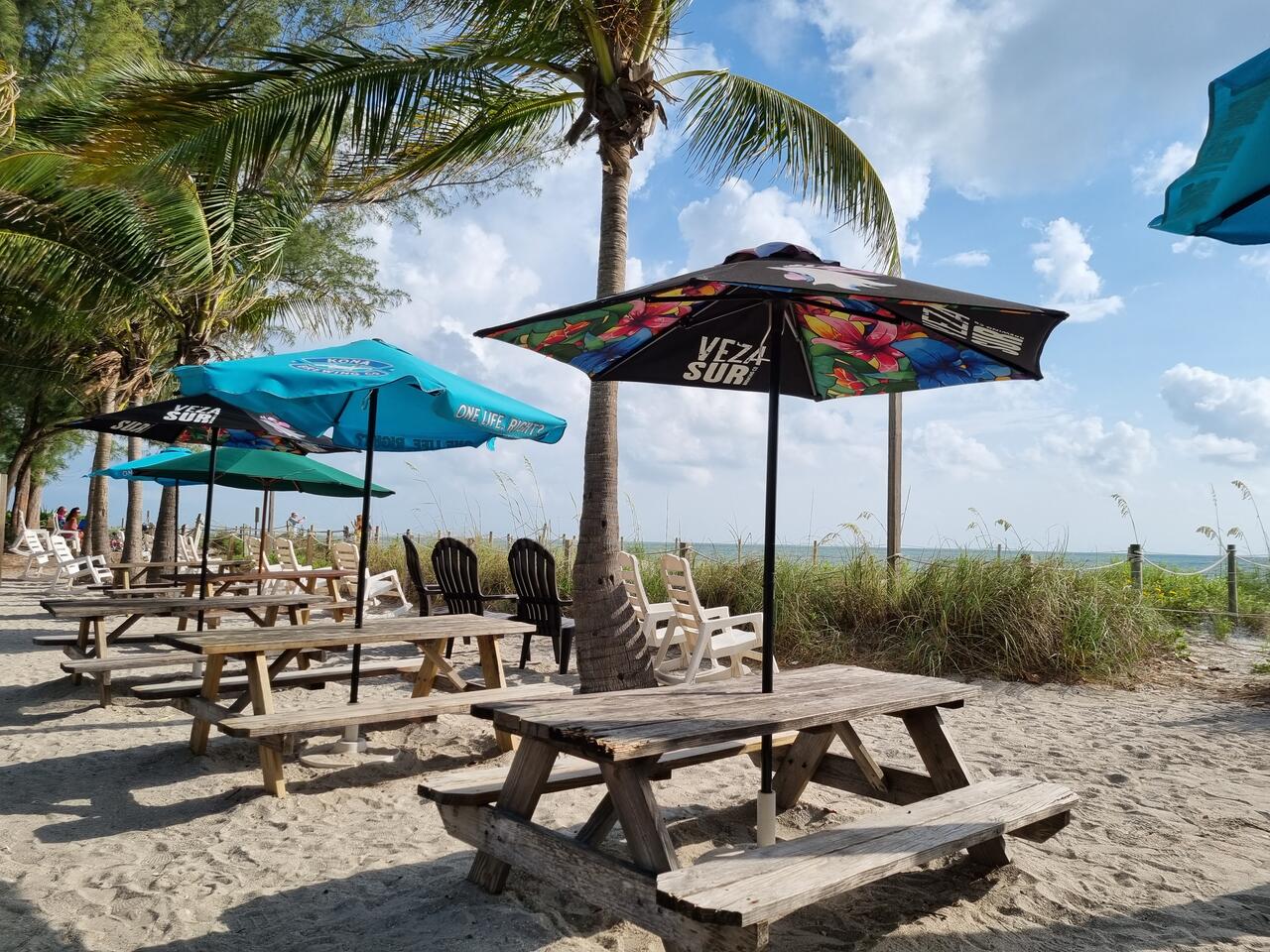 In Captiva ergattern wir einen der letzten Parkplätze bei Mucky Duck, einem wunderschön gelegenen Restaurant direkt am Strand. Die Wartezeit auf einen Tisch verbringen wir mit Livemusik und kühlen Getränken an einem Tisch mit Blick auf das Meer. Ein Traum! Schöner kann Urlaub nicht sein!