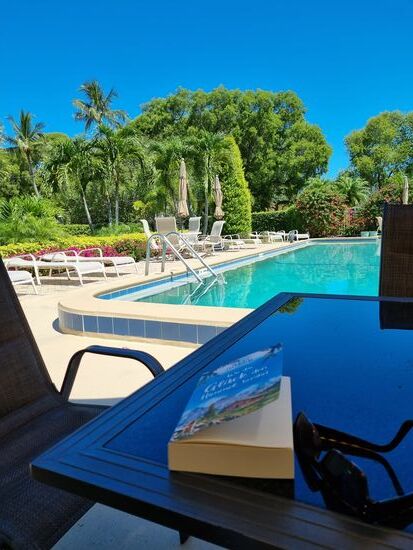Wir genießen die Ruhe und Entspannung am Pool, lesen und faulenzen im Schatten.
