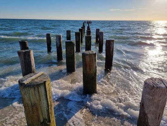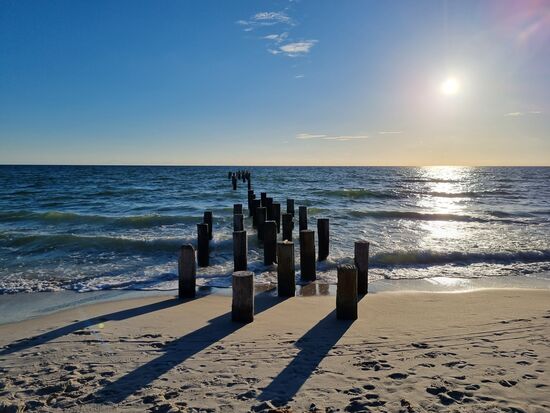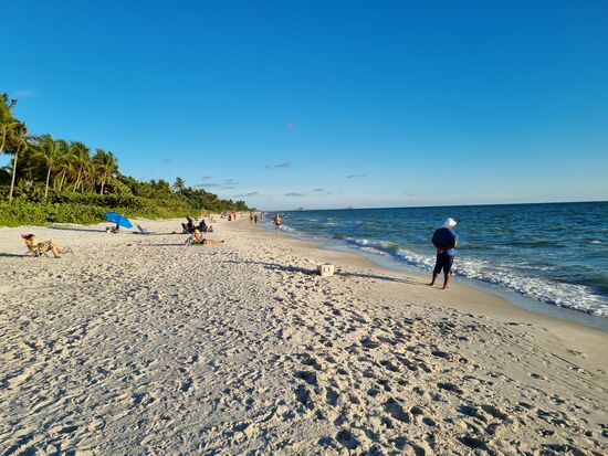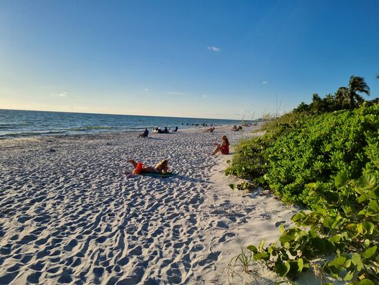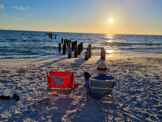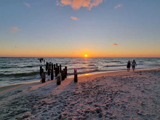 Nach dem selbst zubereiteten Abendessen fahren wir mit den Fahrrädern zum Naples Pier, der aber völlig überlaufen ist. Darum geht es zurück an "unseren" Strandabschnitt.. Dort genießen wir den Sonnenuntergang. Wunderschön!