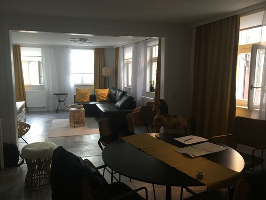 im 1. Stock des Fachwerkhauses liegt eine modern eingerichtete, geräumige Wohnung, die uns als Zentrum für unsere Unternehmungen dient.