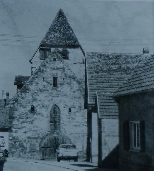 Der Wehrturm mit gotischem Chor und das erstes Schiff der Wehrkirche St. Laurentius werden 1466 fertiggestellt. Erst um 1550 wird das Kirchenschiff erhöht und der Turm erhält ein alemannisches Fachwerk.