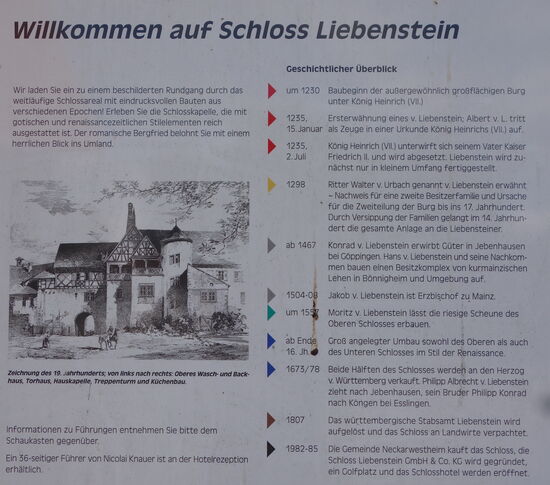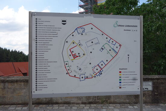 Ganz im Gegensatz zur Burg Wildeck lädt uns das Schloss Liebenstein mit einer Tafel ein, das gesamte Areal zu besichtigen.