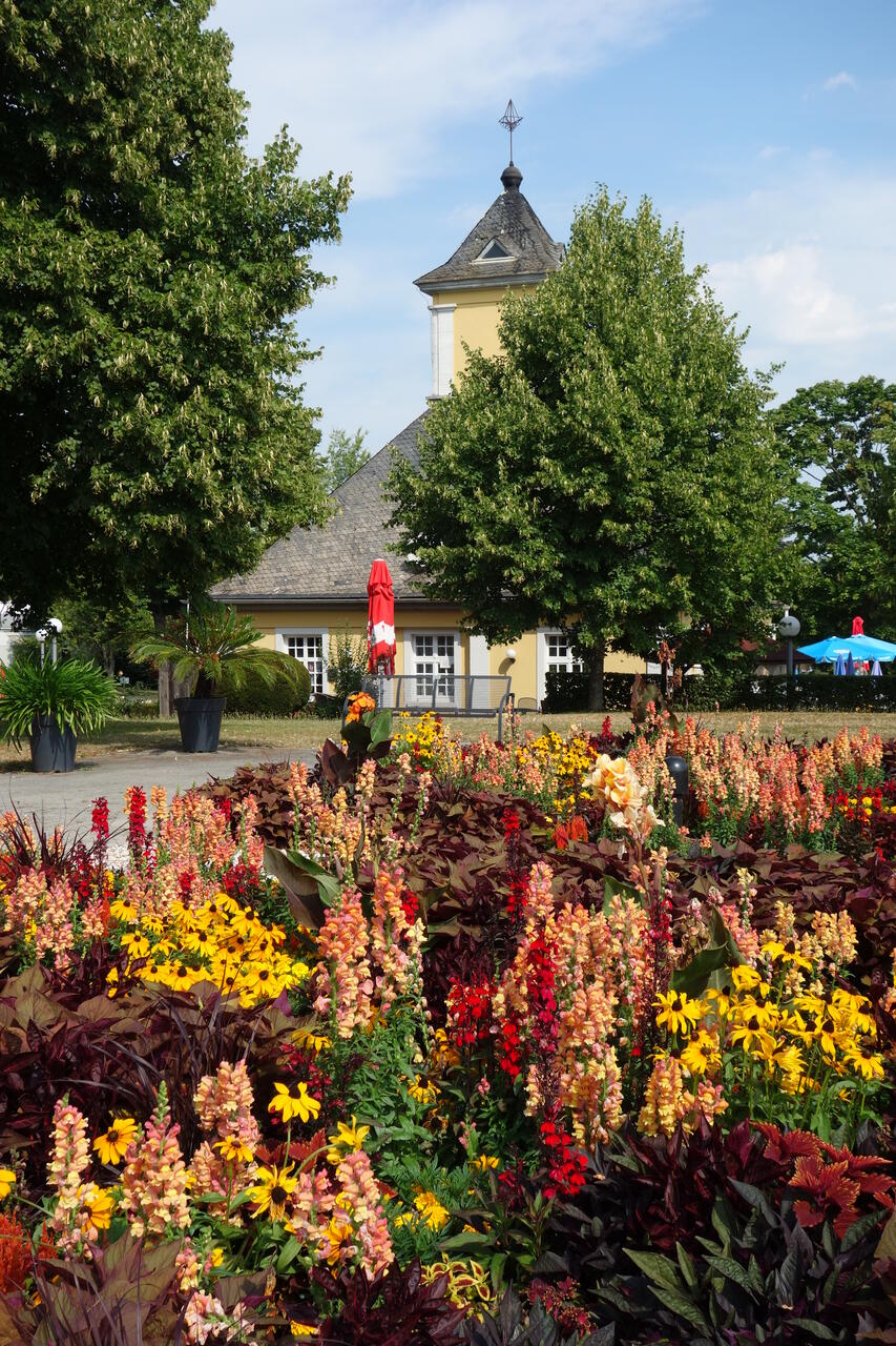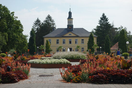 Der Schloßpark ist recht klein und nicht sehr attraktiv. Die Stadt selbst macht einen modernen Eindruck ohne eigentliches (historisches) Zentrum. Daher fahren wir noch bis zum Kurpark, der uns allerdings auch nicht sonderlich anspricht.