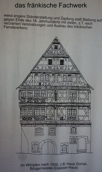 Die Wände des spätmittelalterlichen Spitals sind in Fachwerkbauweise mit Fachwerkhölzern und Gefachen errichtet worden.