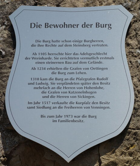 Sinsheim bietet nach meiner Recherche keine besonderen Sehenswürdigkeiten, wenn man einmal von dem bekannten Technikmuseum der Concorde (Eintritt 44€!) absieht. Doch in der Nähe im Ortsteil Weiler befindet sich die zum Teil restaurierte Ruine einer mittelalterlichen Höhenburg - Burg Steinsberg.