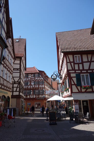 Die Fußgängerzone in der historischen Altstadt ist eine einzige Fachwerkparade mit Häusern aus dem 15. und 16. Jahrhundert.