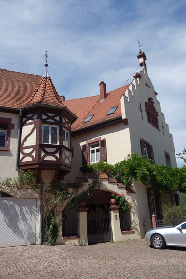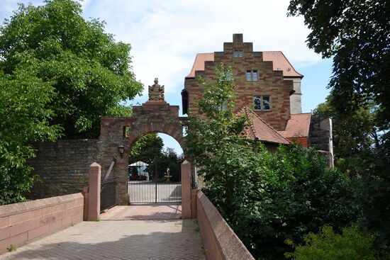 Die Schlossanlage Mosbach, an der höchsten Stelle im Südwesten der Altstadt errichtet, besteht heute noch aus zwei Komplexen, dem „ Alten" (hinteren) und dem vorderen „Neuen Schloss". Dem Alten Schloss fehlen architektonische Details, die einen Hinweis auf die Erbauungszeit erlauben. Der romantische Eindruck, der heute reizvoll erscheinen mag mit Erker und Fachwerk, Zwerchgiebeln und geschwungener Giebelgestaltung, geht auf eine Erneuerung von 1898 zurück.
