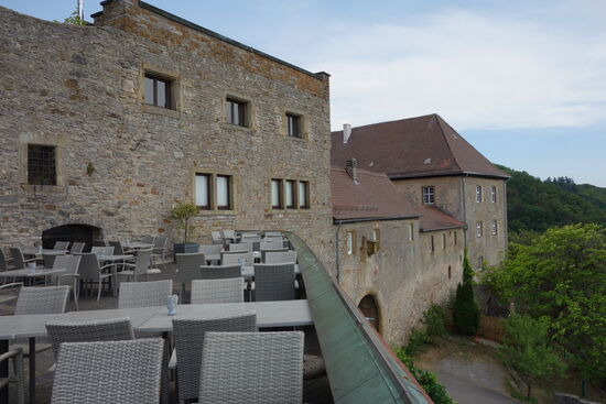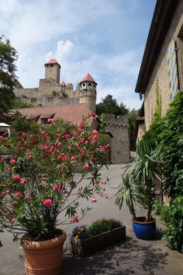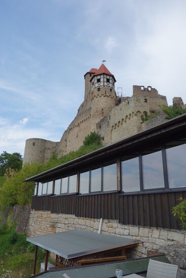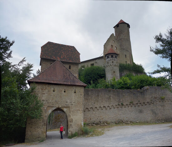 Inwischen sind es 35° Celsius und eine Besichtigung der Burg Hornberg mit Klettertour durch das Gemäuer wollen/müssen wir uns ersparen.
